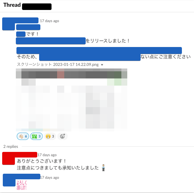 実装だけしてもらってリリースや周知は社歴の長いメンバーがやる、なんてことはせず、事前・事後の周知やリリースした機能に関して頂いたフィードバックの対応などすべておまかせすることにしています。